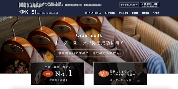 K-51インターナショナルはJR田町駅から徒歩5分ほどの所にある高級オーダースーツ店です。